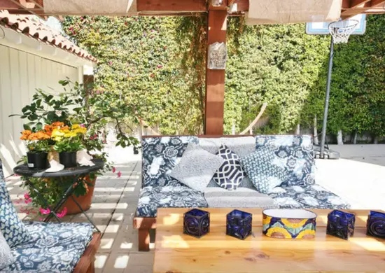 Les jardins, quelle que soit leur taille, se prêtent aux rassemblements, alors assurez-vous de réserver un espace pour recevoir vos invités. Dans cette location Airbnb, une grande table à manger occupe l’espace, tandis qu’un long plan de travail sur le côté de la maison permet de préparer et de servir les repas. Créez une ambiance décontractée en choisissant des meubles colorés et en remplissant un vase (ou un pot) de fleurs avant l’arrivée des invités.